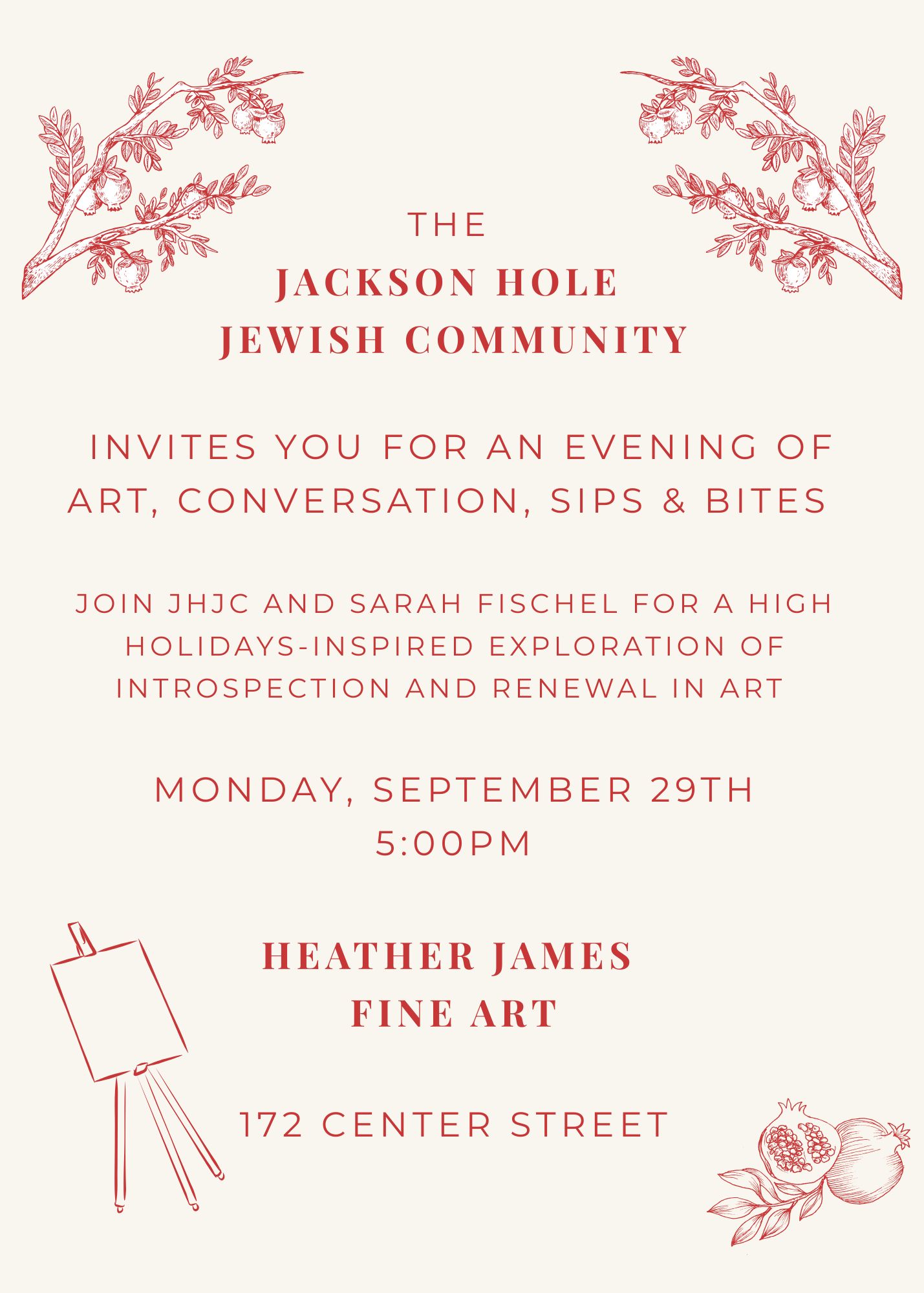 Join JHJC and Sarah Fischel for a High Holidays-inspired exploration of introspection and renewal in art.